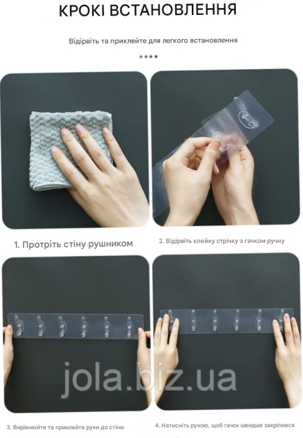 Монтаж без инструментов: крючок устанавливается на надежную липучку, поэтому вам не нужно сверлить плитку, стены или мебель. Достаточно очистить поверхность, снять защитную пленку и плотно прикрепить. Для лучшей фиксации рекомендуется оставить крючок 5 – 6 часов без нагрузки.