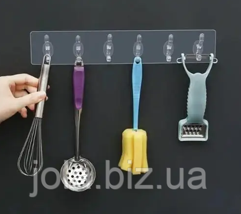 Крючок подходит для полотенец, мочалок, бритв, лопаток, кухонных аксессуаров, ключей, мелких инструментов и других вещей. Благодаря компактной и продуманной конструкции на 6 подвесов, он обеспечивает порядок и удобный доступ ко всему необходимому.